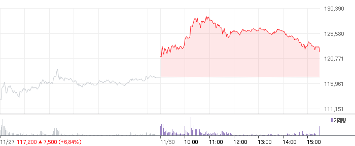 <신라젠 2020.11.30 기준(장마감) 기준 당일 주식 차트>