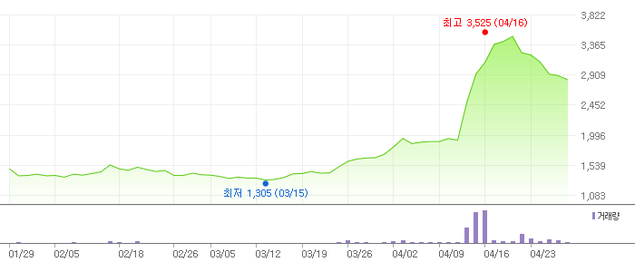 아래는 아이오케이의 일간, 3개월 주식 변동 차트입니다.