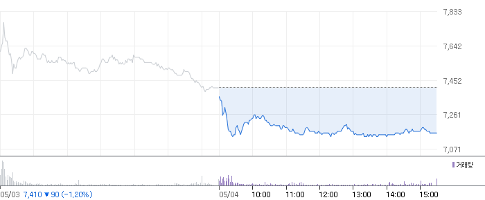 <삼성중공업 2021.05.04 기준(장마감) 기준 당일 주식 차트>