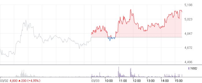 <알로이스 2021.03.03 기준(장마감) 기준 당일 주식 차트>