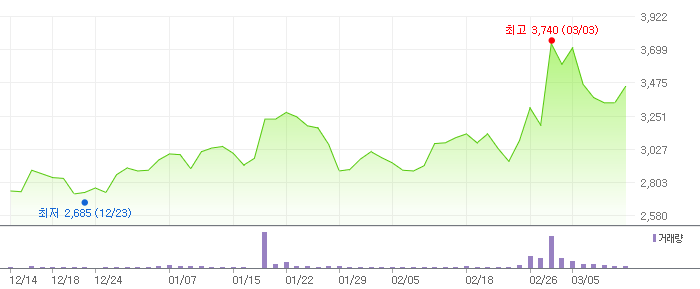 아래는 제이엠티의 일간, 3개월 주식 변동 차트입니다.