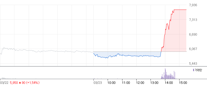 <지니뮤직 2021.03.23 기준(장마감) 기준 당일 주식 차트>