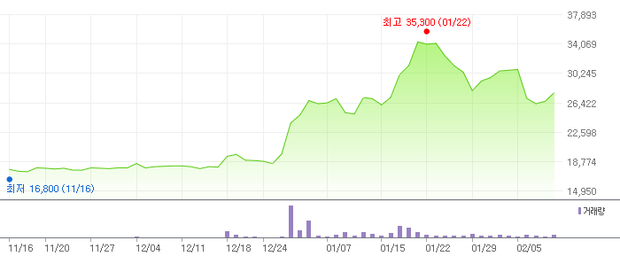 아래는 우리산업의 일간, 3개월 주식 변동 차트입니다.