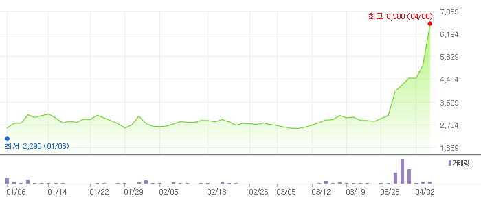 <한화투자증권 2021.04.06 14:29 기준(장중) 기준 당일 주식 차트>
