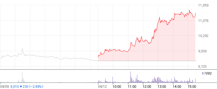 <CS 2021.04.12 기준(장마감) 기준 당일 주식 차트>
