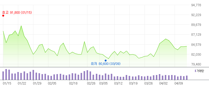 아래는 삼성전자의 일간, 3개월 주식 변동 차트입니다.