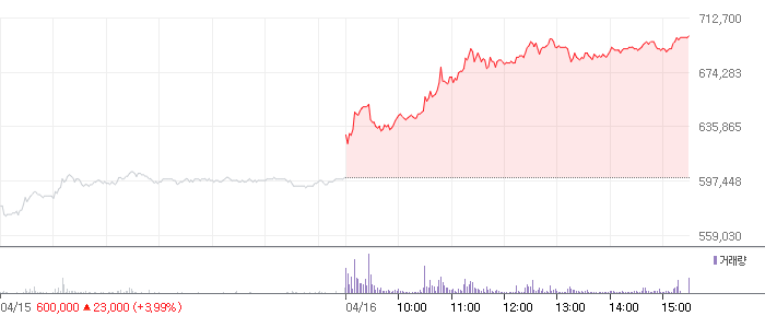 <효성티앤씨 2021.04.16 기준(장마감) 기준 당일 주식 차트>