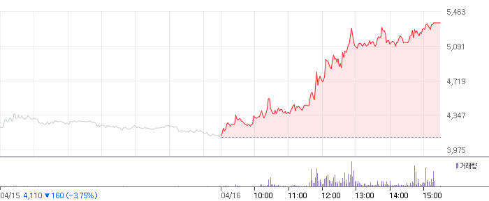 아가방컴퍼니 주가를 확인해보면 2021.04.16 기준(장마감)으로 5,340원입니다. 전일에 비해 1,230원 상한가한 금액입니다. 아가방컴퍼니의 시가총액은 1,756억원입니다. 아가방컴퍼니의 거래량은 34,970,773건이고, 거래대금은 총 174,774백만원입니다.